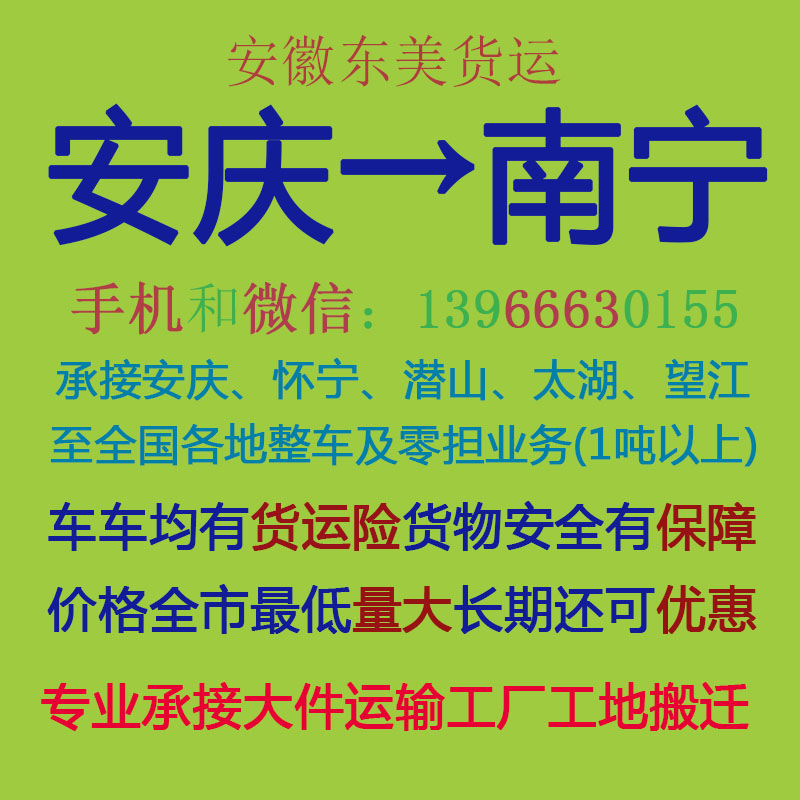 安庆物流公司 安庆至南宁物流运输 安庆到南宁配货 安庆配货站