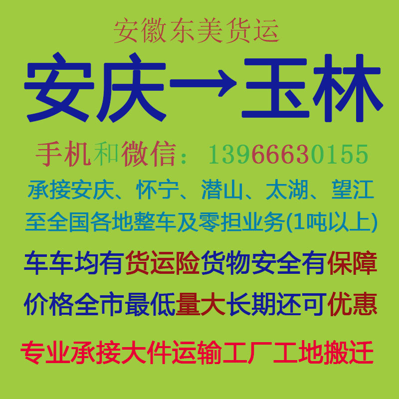 安庆市至甘肃省专线公路运输