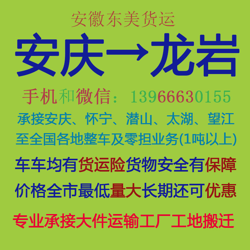 安庆物流公司 安庆至龙岩物流运输 安庆到龙岩配货 安庆配货站