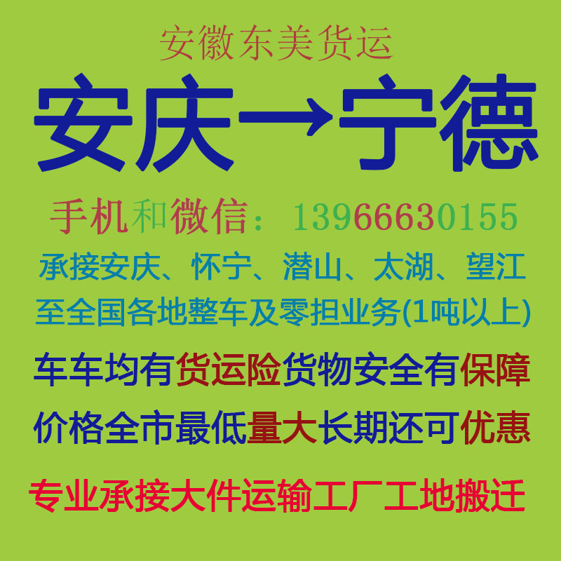 安庆物流公司 安庆至宁德物流运输 安庆到宁德配货 安庆配货站
